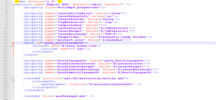 添加java编译所需变量,java相关jar,ant相关jar,引入文件 eosTask.xml