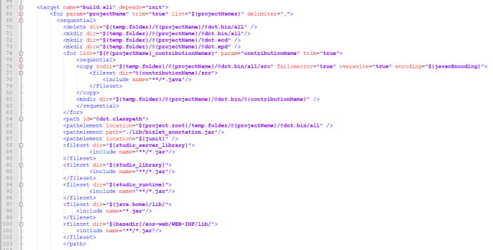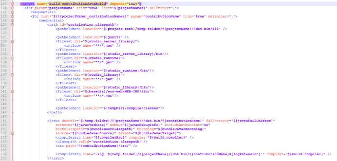build.xml使用的相关变量,包含eos相关包,jdk版本,项目名称,构件包名,等等
