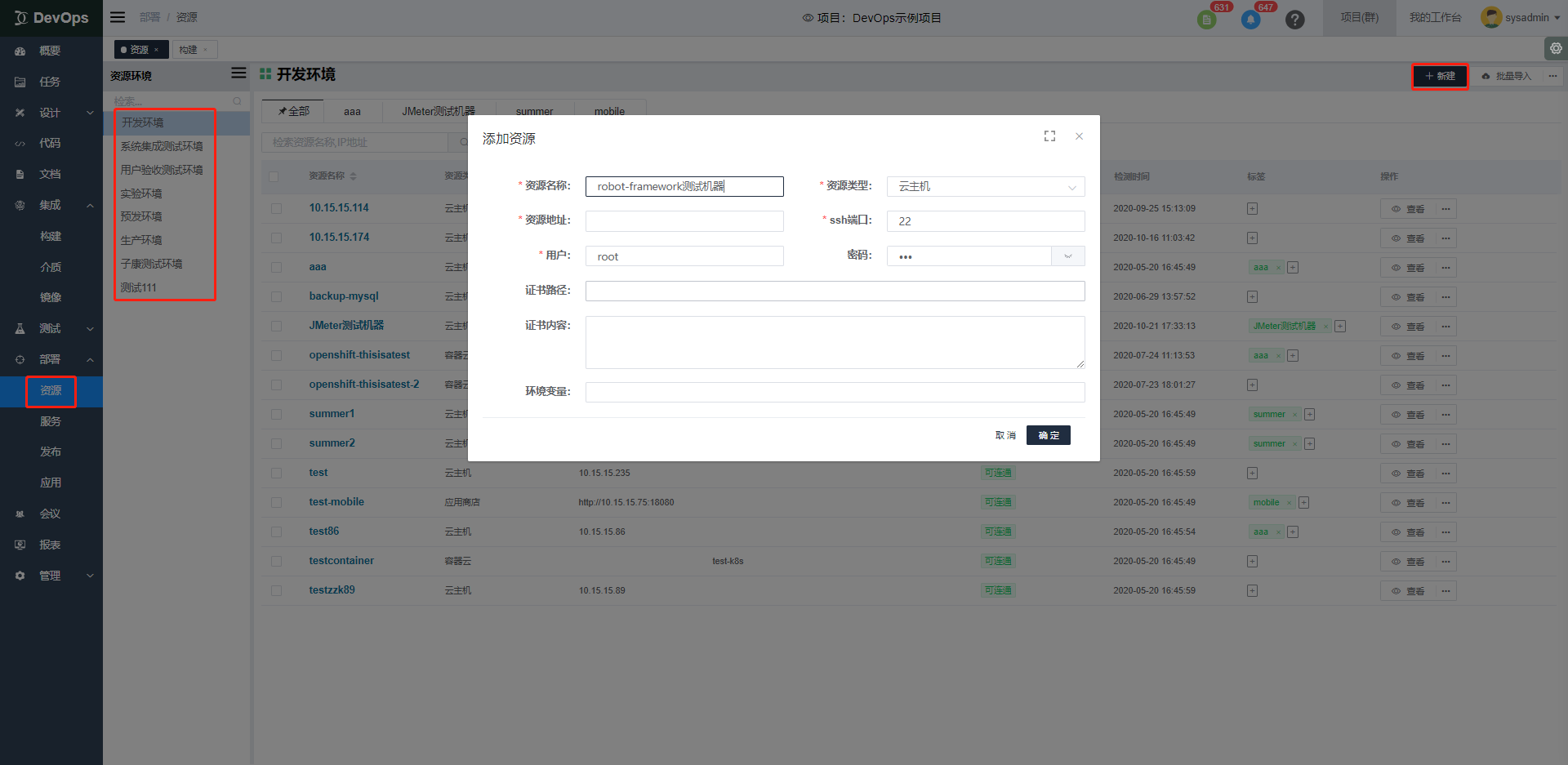 用户权限目录为资源配置用户拥有权限的目录,robot测试命令会在该目录执行