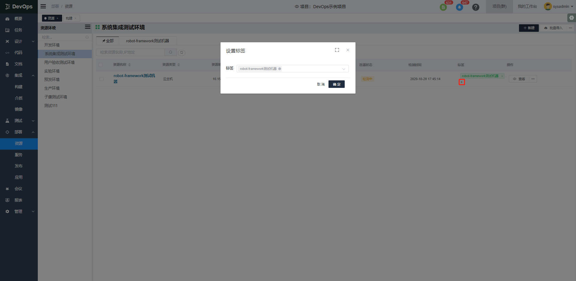 选择指定的目标机器(刚刚配置的robot-framework测试机器)