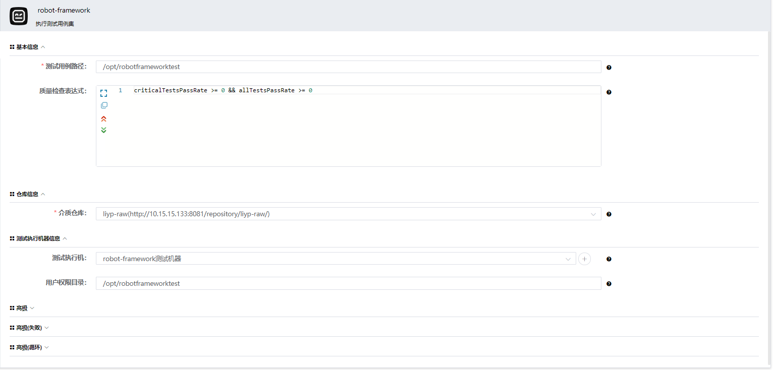 测试用例需要存储在git库或者测试执行机器某条路径下,并且测试执行机器可以正确执行robot命令