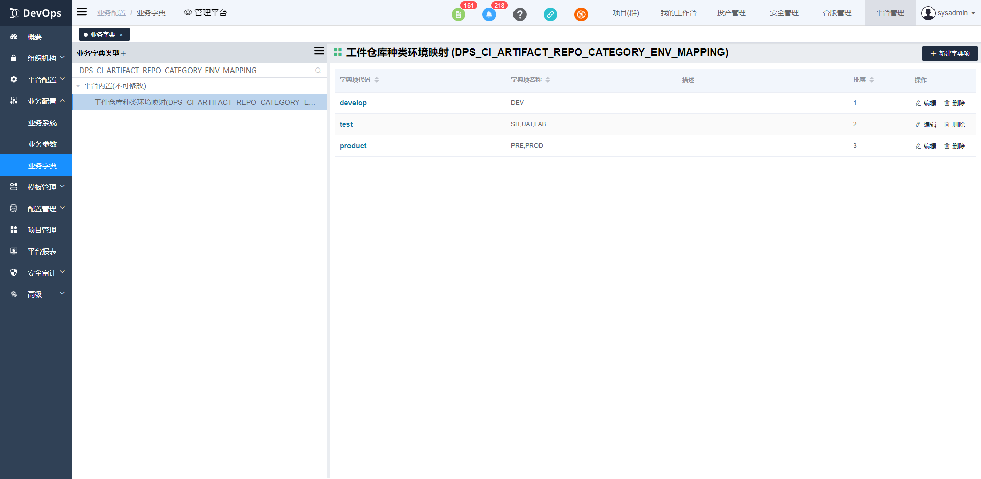 工件仓库种类环境映射 (DPS_CI_ARTIFACT_REPO_CATEGORY_ENV_MAPPING)