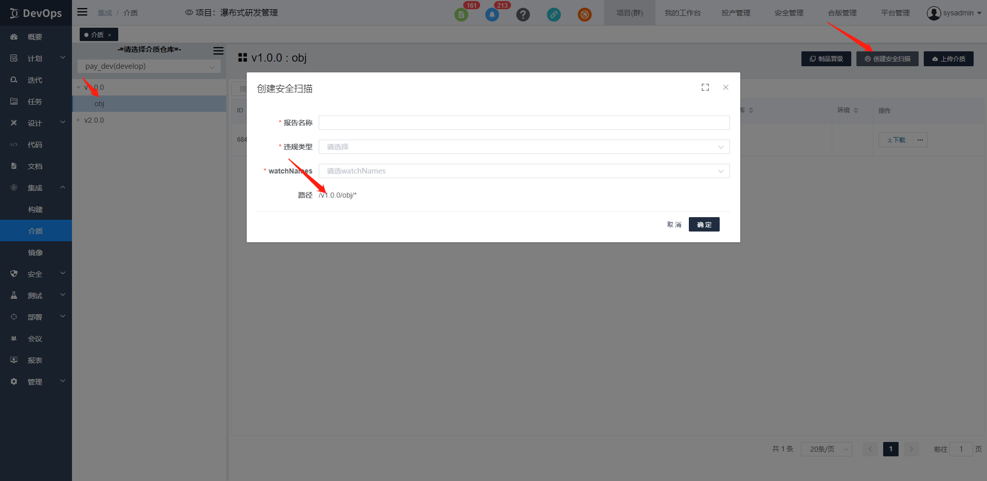 创建安全扫描功能依靠Xray为测试工具来扫描制品安全漏洞。
