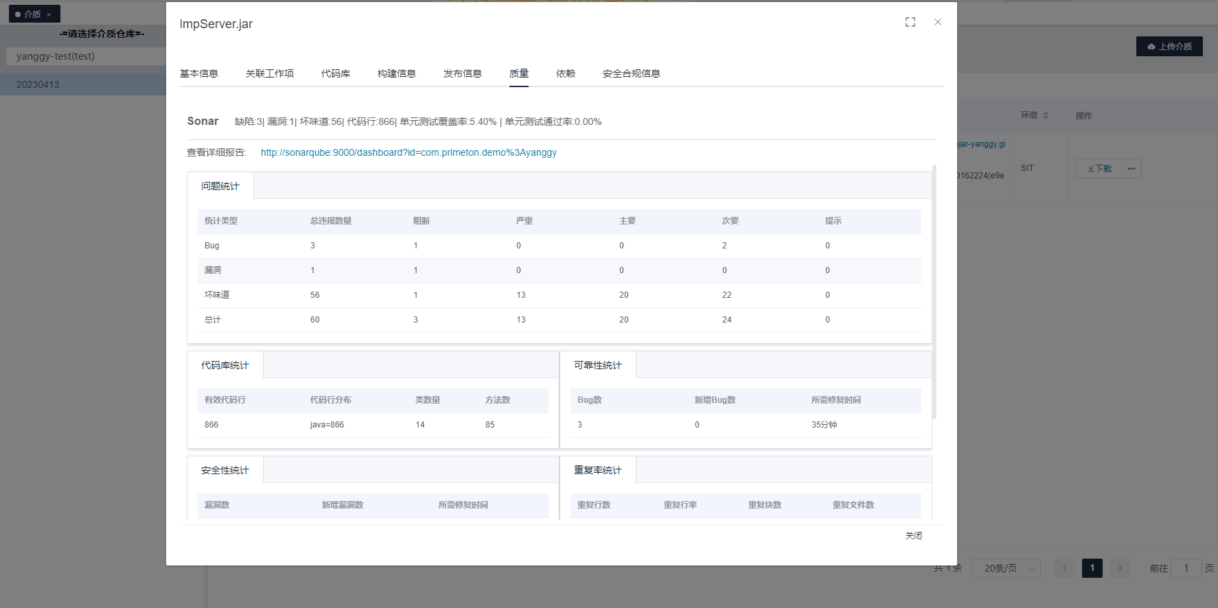 质量信息来源于构建流水线执行sonarqube代码质量扫描产生。