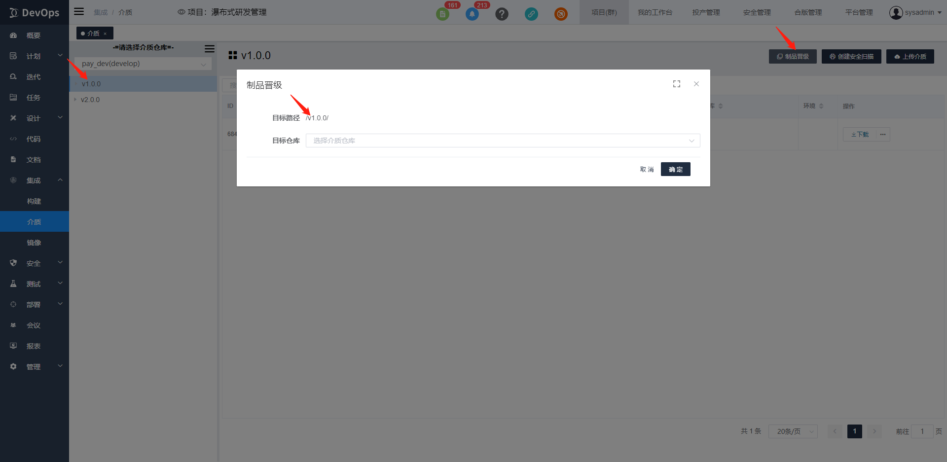 制品晋级背后的核心理念就是单一制品原则,也就是构建一次,多次部署,制品晋级一般都是会有多个制品库,可以是多个服务器,也可以是多个目录,比如,当制品在测试环境验证通过后,人工晋级到预发布环境的制品仓库,制品晋级功能支持以目录层级晋级制品。