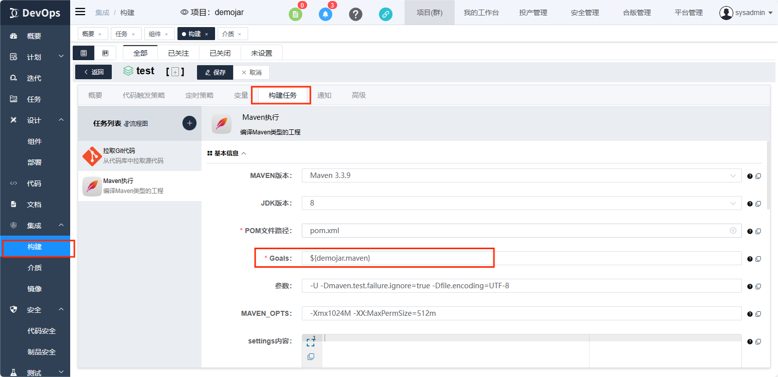 位置:构建定义编辑配置 构建任务