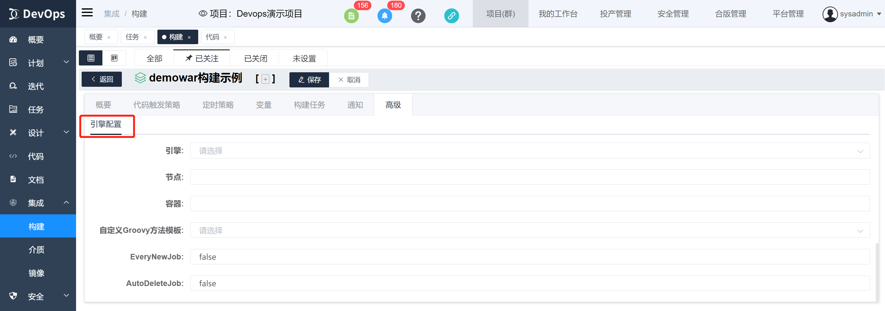 测试构建定义时推荐高级中选择引擎,将EveryNewJob和AutoDeleteJob参数置为false,便于在jenkins中查看日志和文件。