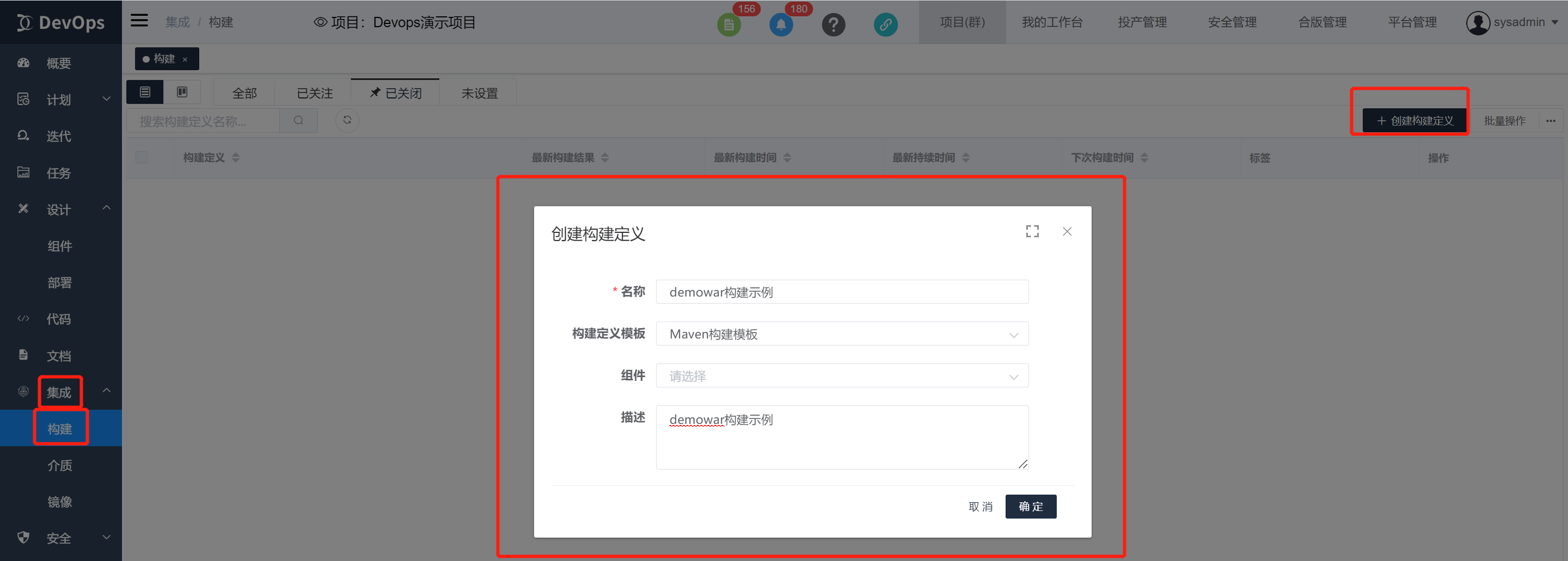 新建构建定义
