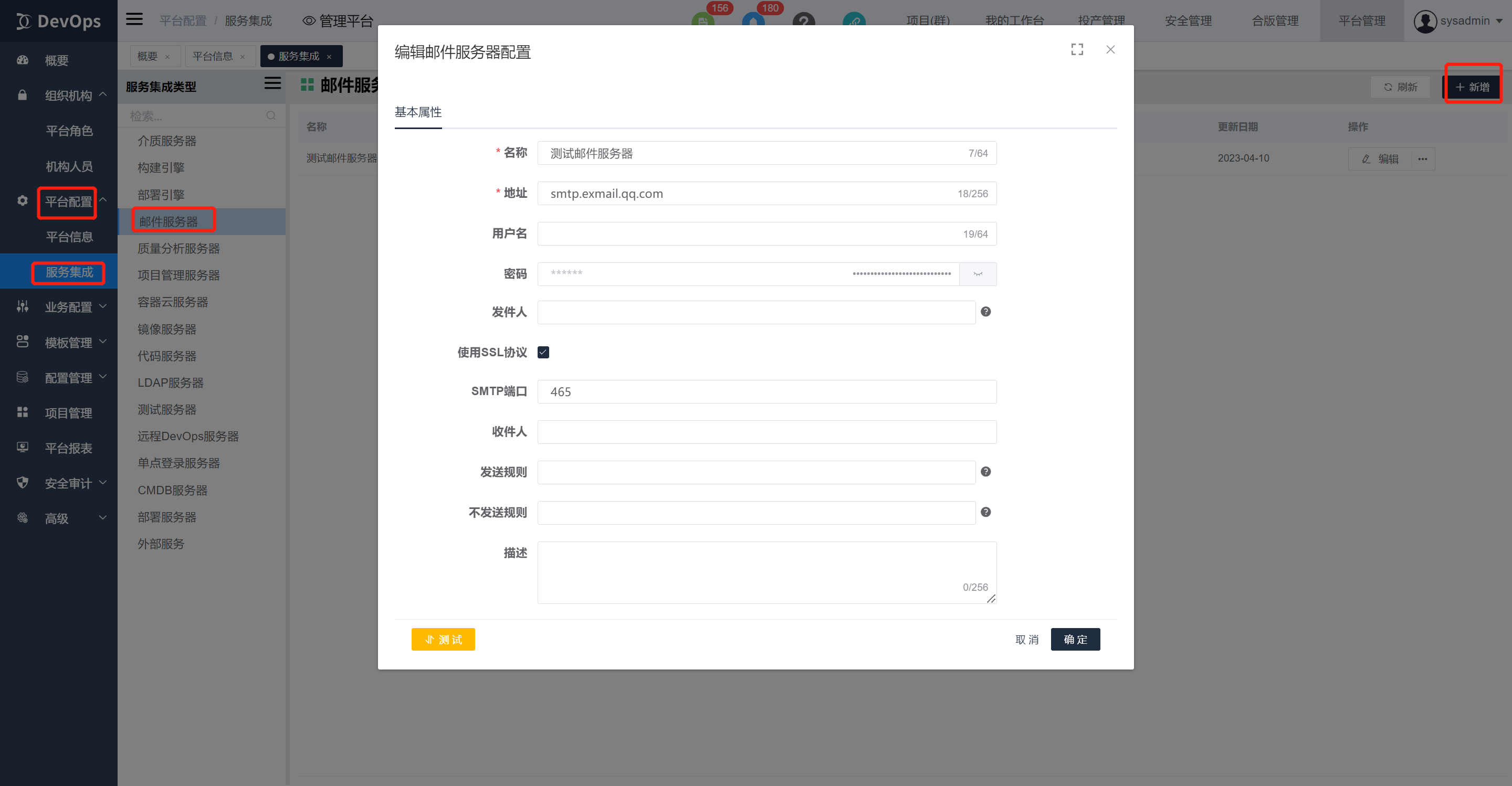 需要事先在平台配置》服务集成中配置好需要的第三方服务。