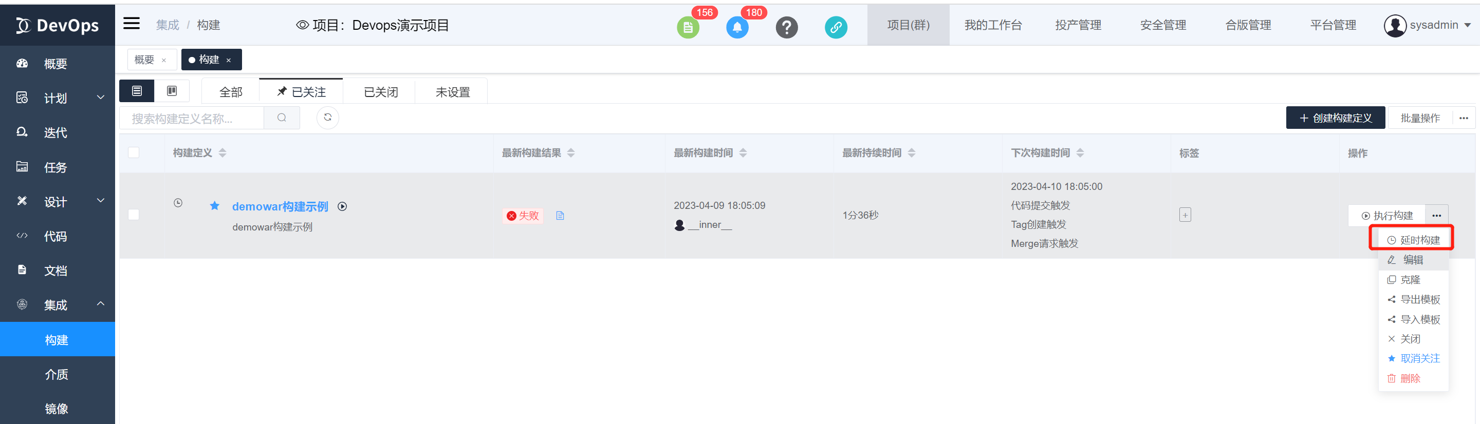 本章主要用于 DevOps 的项目下构建管理的说明。
