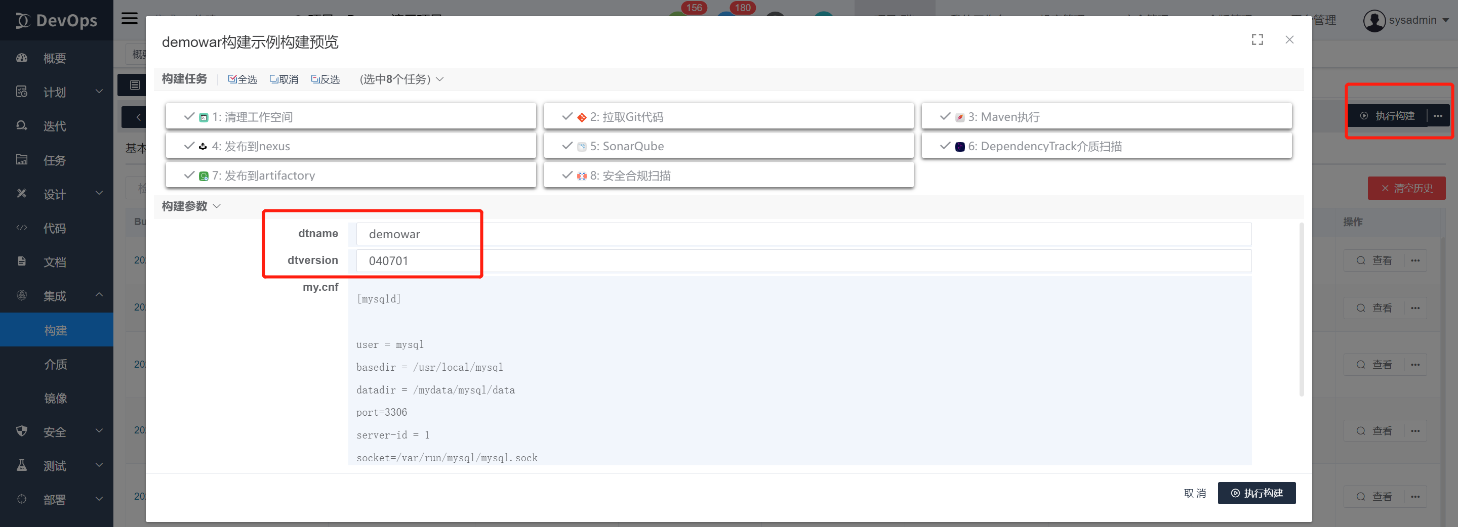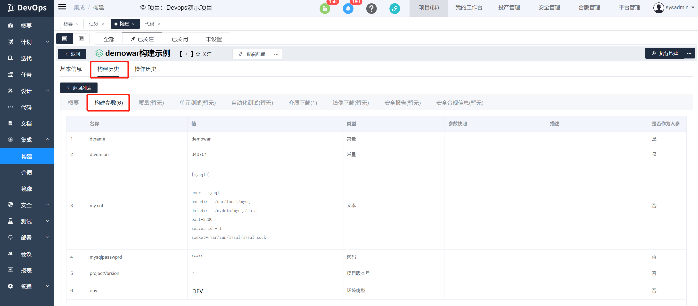 位置:构建定义执行数据 构建历史》构建参数