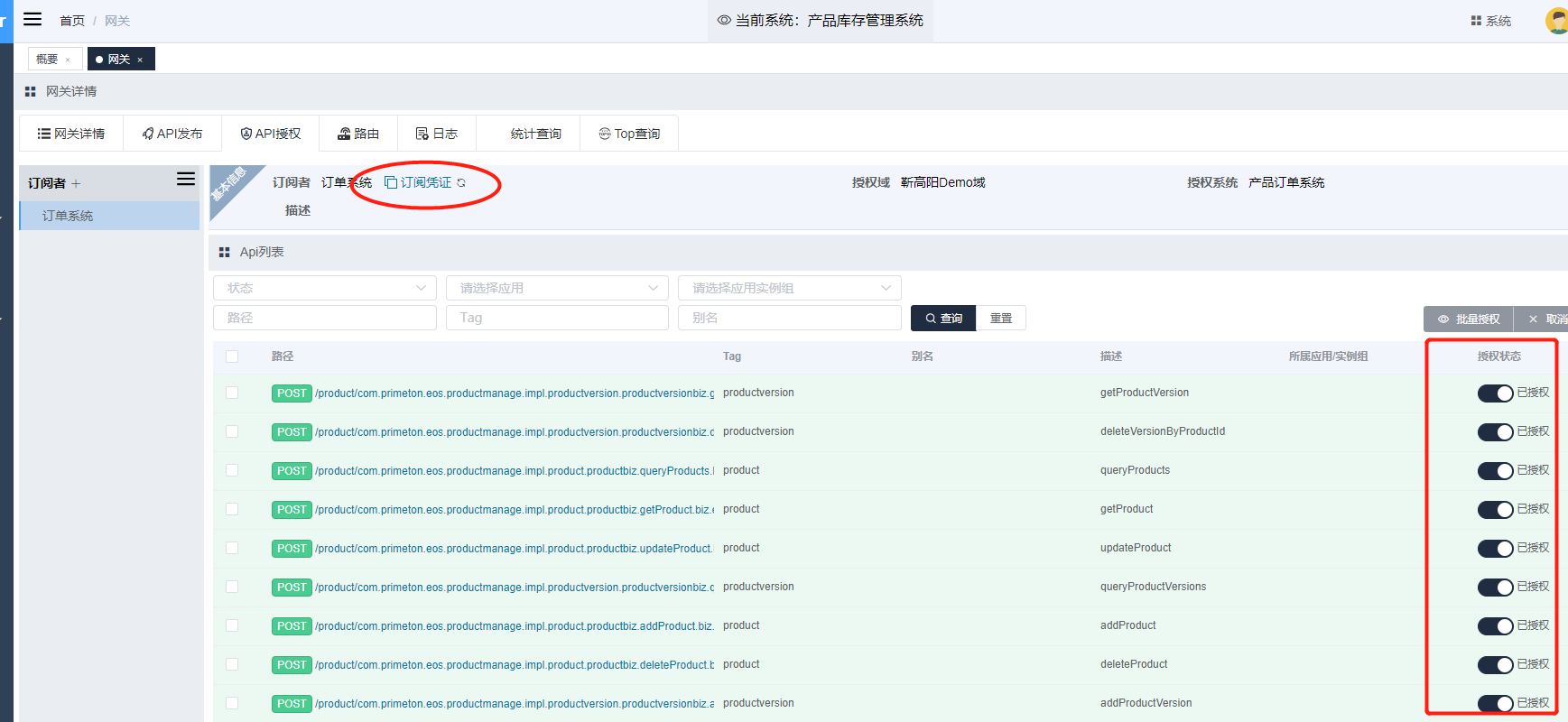 1.创建订阅者:授权系统选择需要被授权的系统即可:即上述创建的订阅系统,创建完订阅者之后,会生成一个订阅凭证