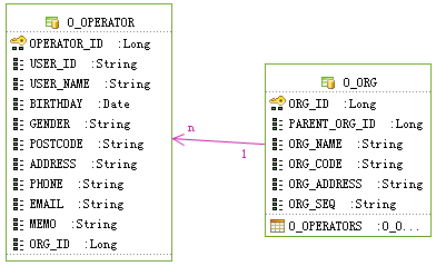 | 14 | getRelationEntities(String dsName, DataObject dataObject, String property) | 根据数据实体对象的关联属性获得关联实体对象数组,返回关联实体对象如果是多对一或一对一关联关系时,将关联的实体对象构造为数组返回;如果是一对多关联关系时,返回关联的实体对象数组 |