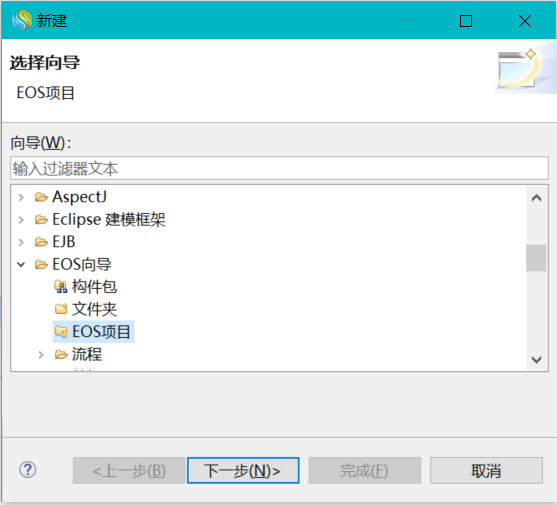 | 请为EOS服务选择一个包 | 为EOS服务选择一个目录 | 点击<浏览>按钮,在api构件包下选择一个目录 |