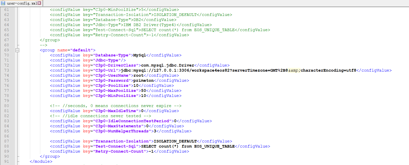 修改数据库连接信息(server/workspace/conf/workpace/config/user-config.xml)