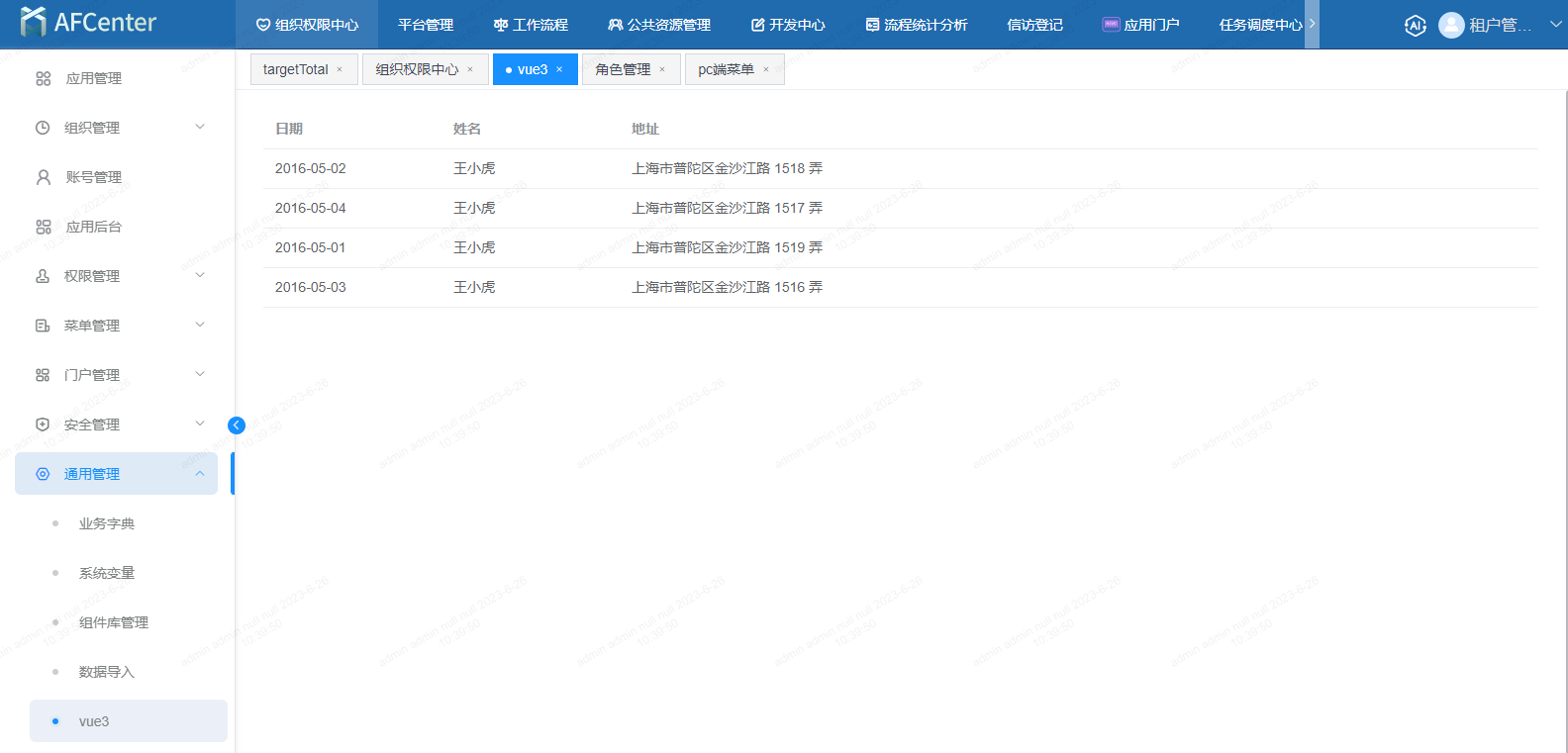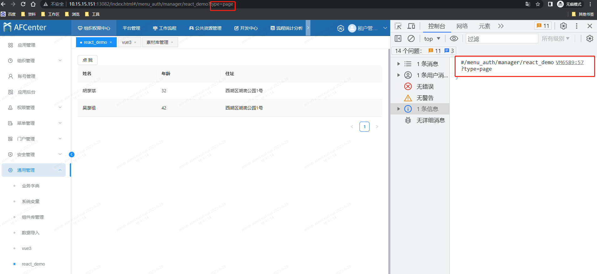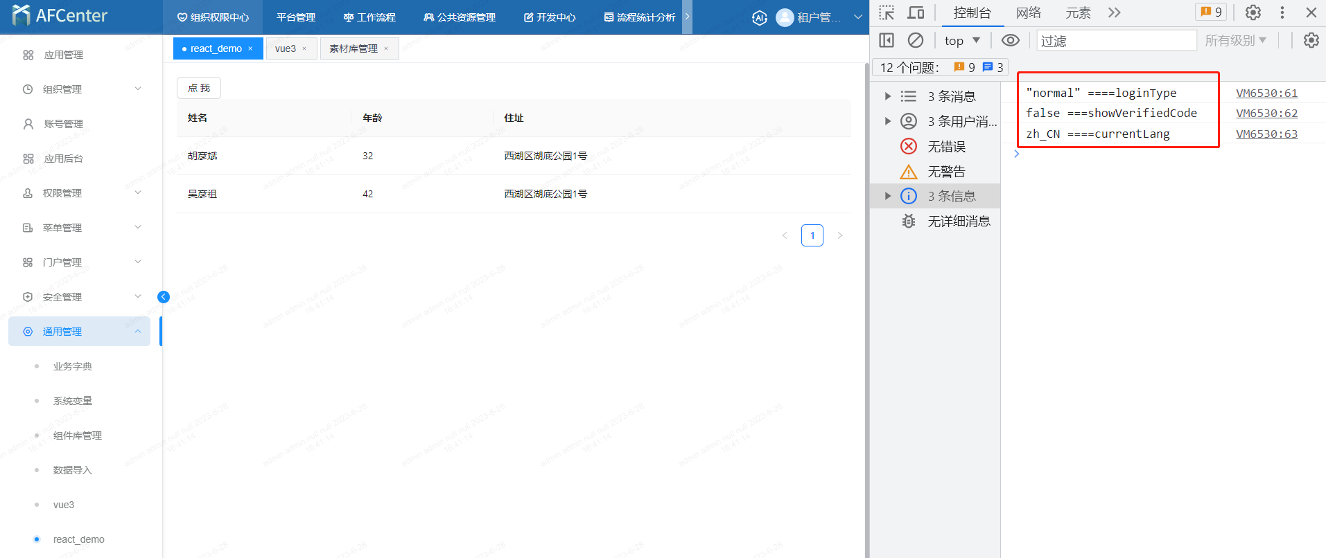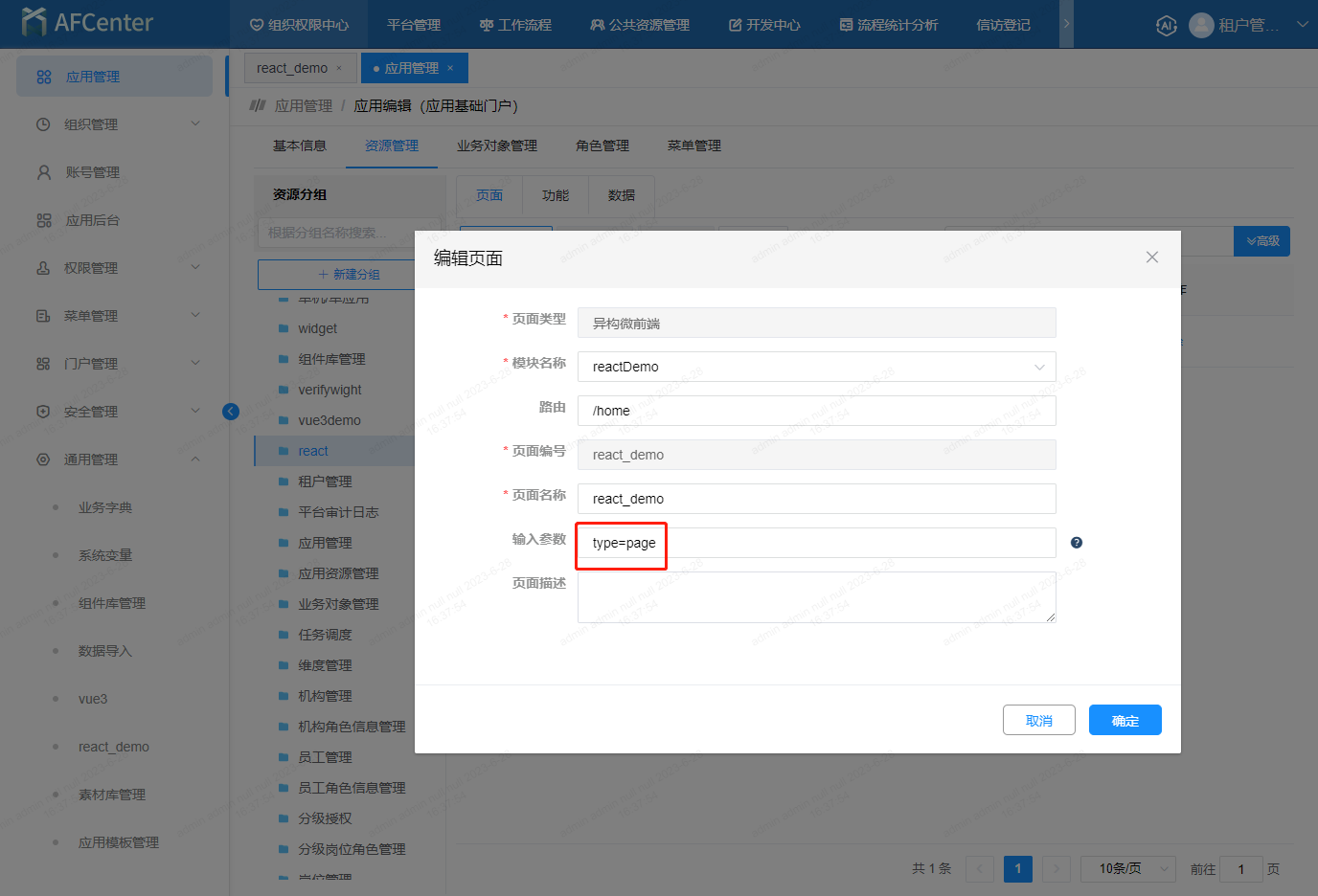 ​ 这里列举两个异构微前端页面挂载在afcenter菜单中展示的操作步骤,vue3和react类型项目。