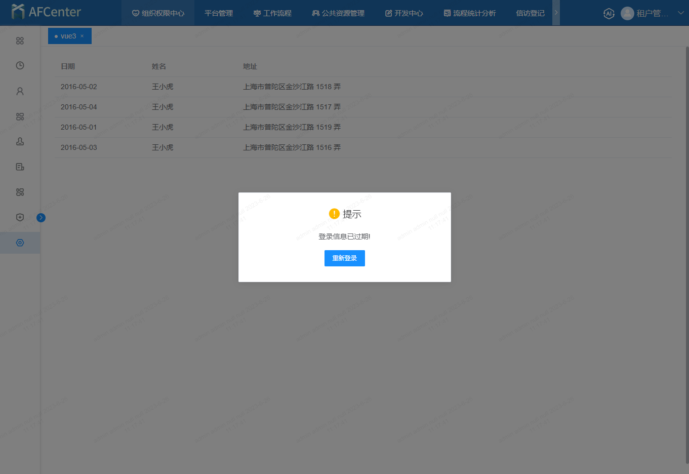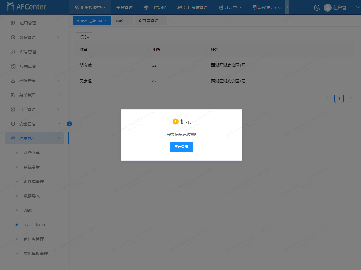 例如,在微前端调用接口token过期时,触发全局的登录信息已过期提醒,代码如下: